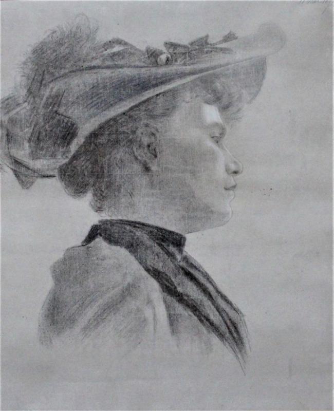 "Portrait de femme au chapeau ".