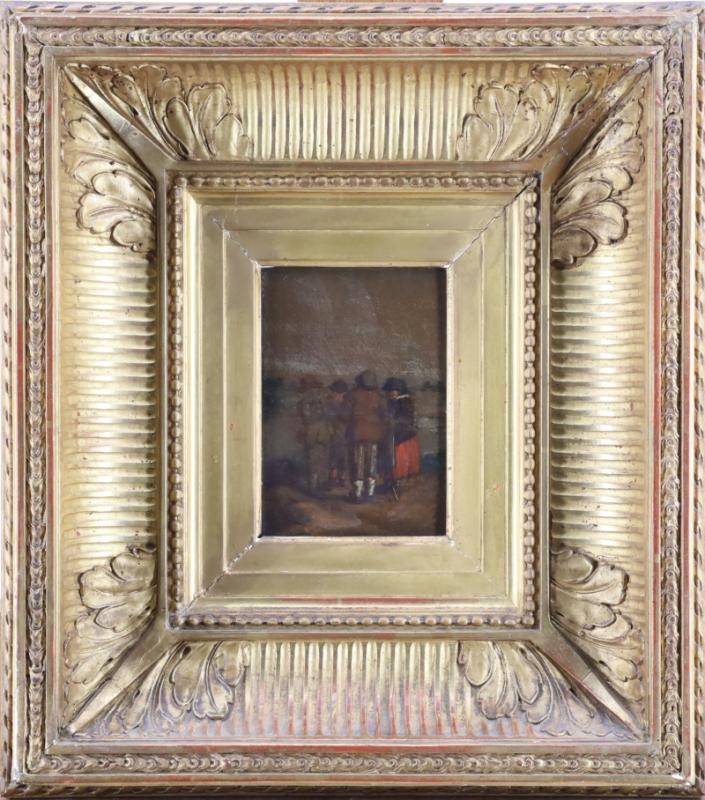 Huile sur panneau dans un encadrement de bois et stuc doré.