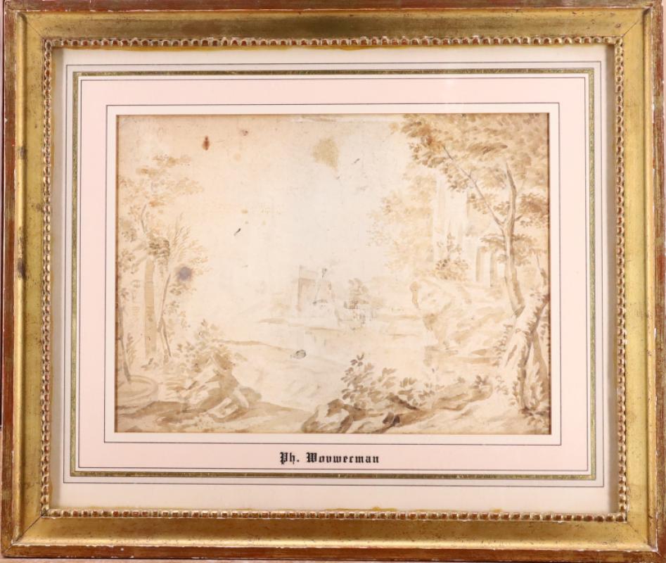Dessin double face au crayon et lavis d'encre dans un passe partout chargé d'un cartel portant le nom PH. WOUWERMAN.