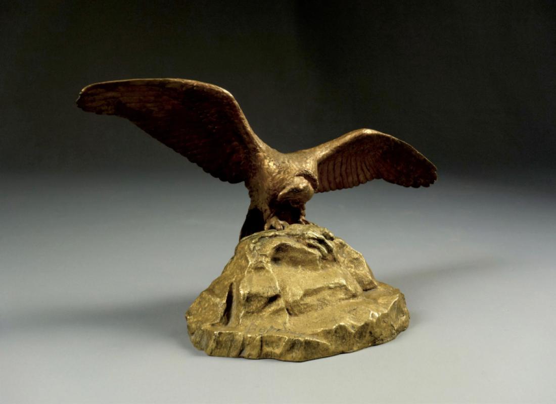 Vautour tenant sa proie sur un rocher. Bronze à patine dorée signé Bofering sur le rocher daté 1868.