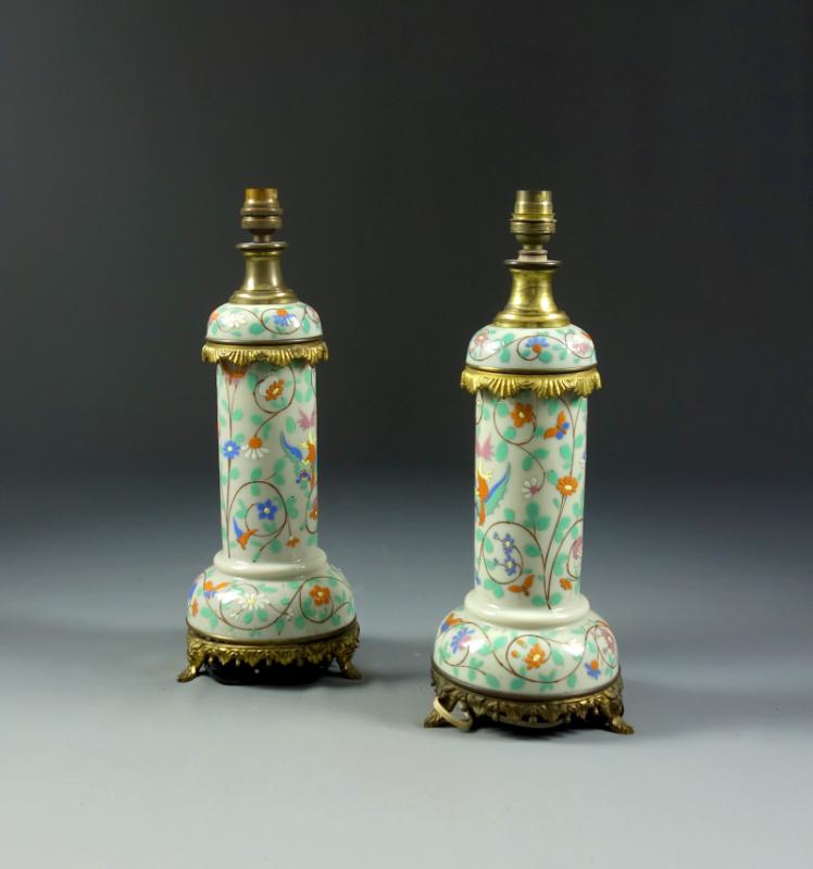 Paire de lampes en porcelaine à décor à l'émail de dragons dans le goût chinois, montées à l'électricité dans une garniture en bronze.