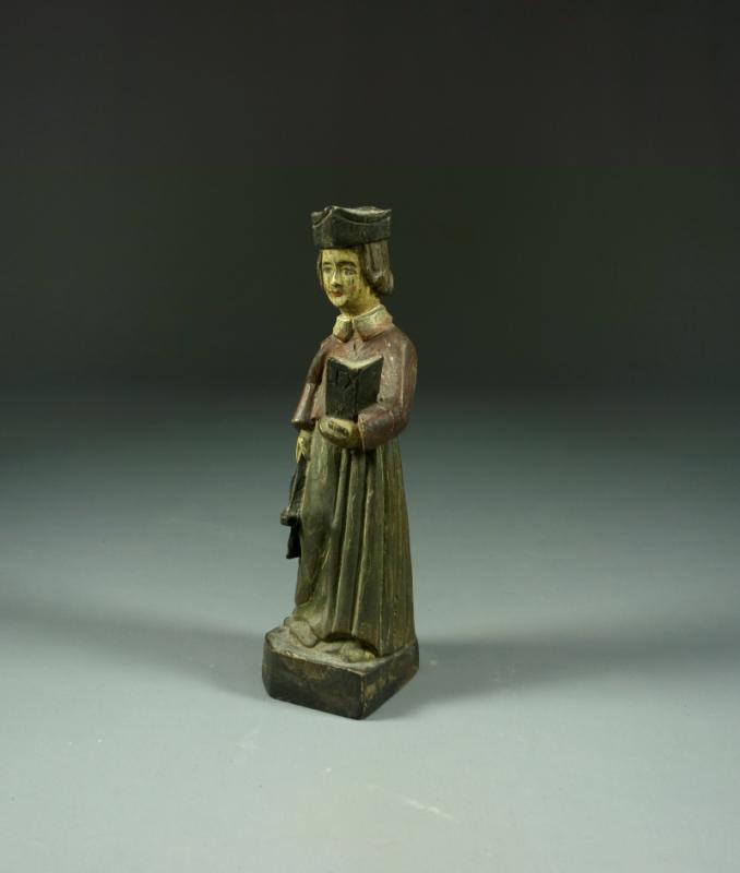 Sculpture en bois polychrome représentant Saint Yves, patron des juristes, tenant un livre de lois.