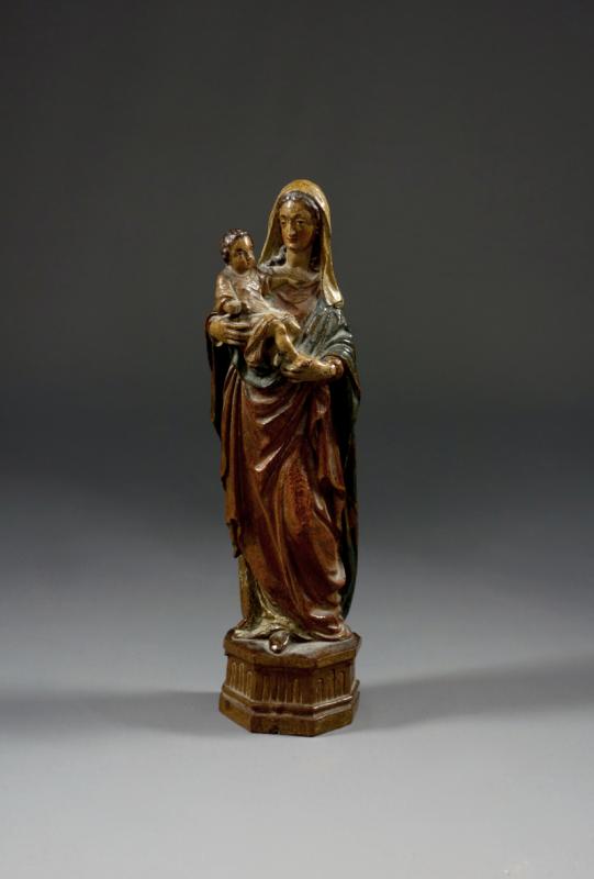 Vierge à l'Enfant en bois sculpté et laqué polychrome.