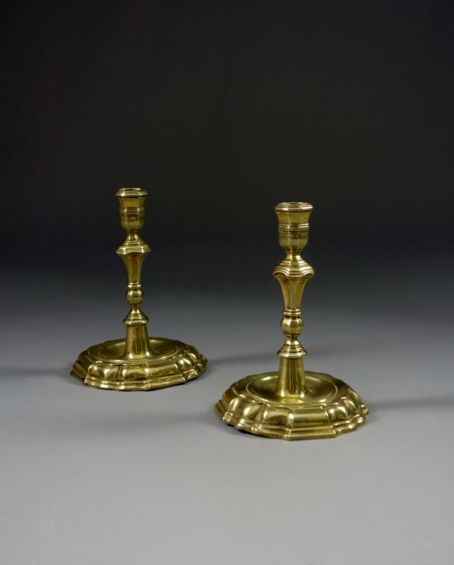 Paire de flambeaux en bronze doré reposant sur une base chantournée.