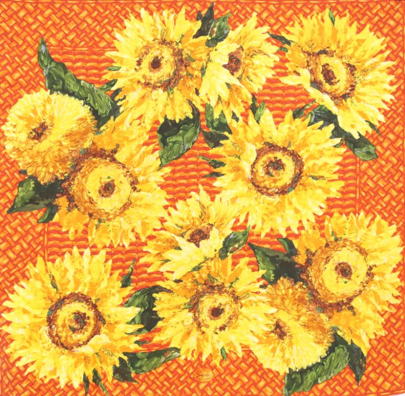 Carré en satin de soie imprimé, modèle "Girasoli"