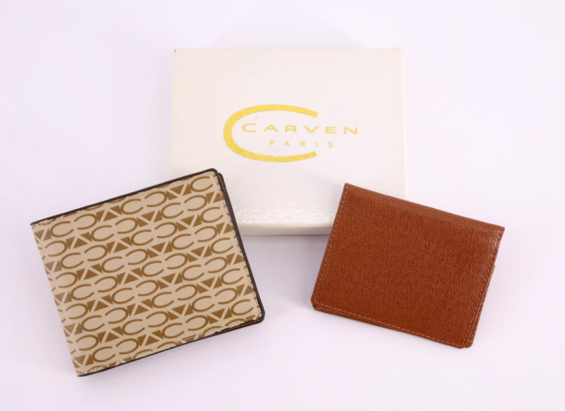 Lot comprenant un portefeuille en cuir monogrammé et un porte-cartes en cuir marron (dans leur coffret d'origine)