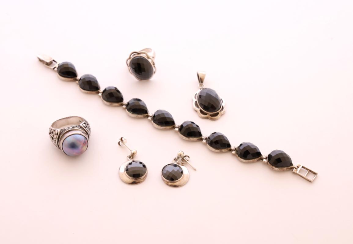 Lot de bijoux à monture en argent 925‰ comprenant un bracelet, deux