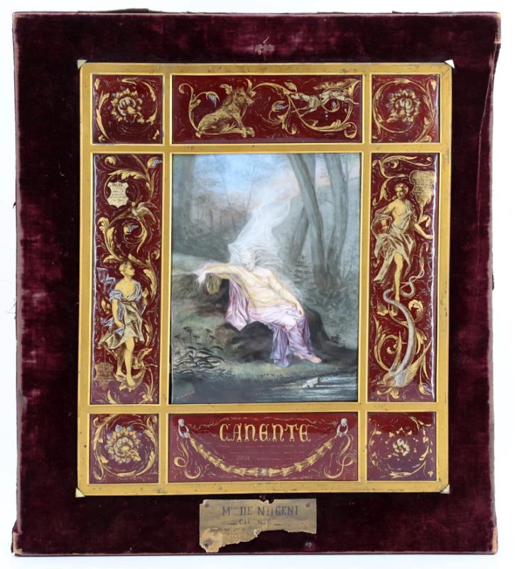 Assemblage de plaque d’émail sur cuivre rehaussées et légendées à l’or