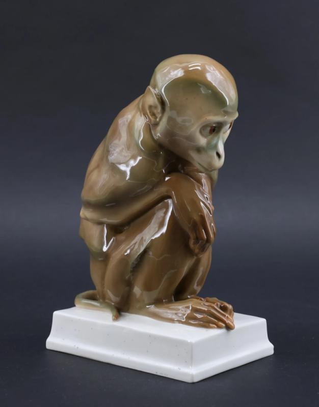 Singe accroupie en porcelaine polychrome