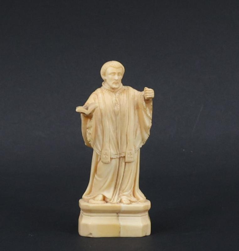 Sujet en ivoire d'hippopotame (Hippopotamus amphibius) sculpté représentant un ecclésiastique debout, tenant un livre
