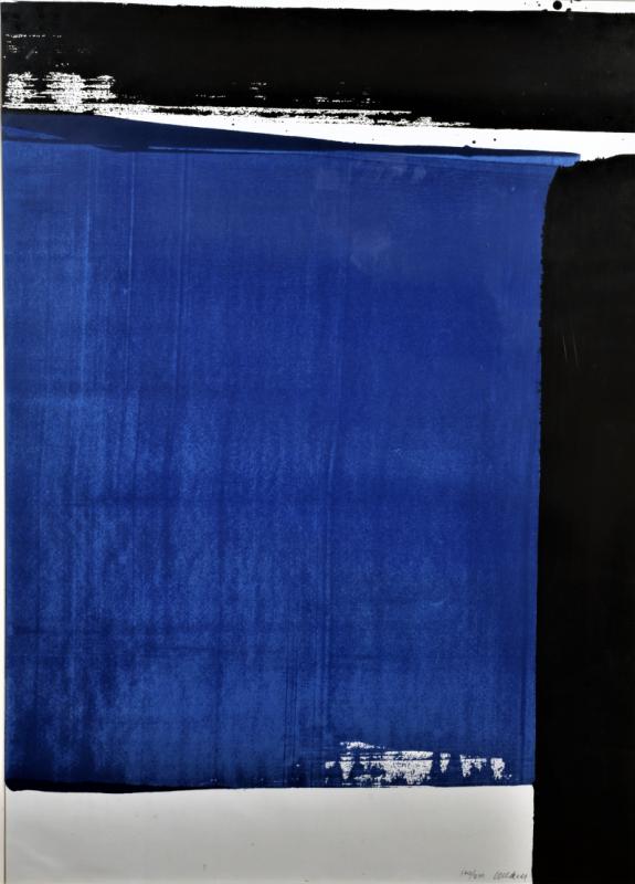 Sérigraphie en bleu et noir sur vélin BFK Rives.