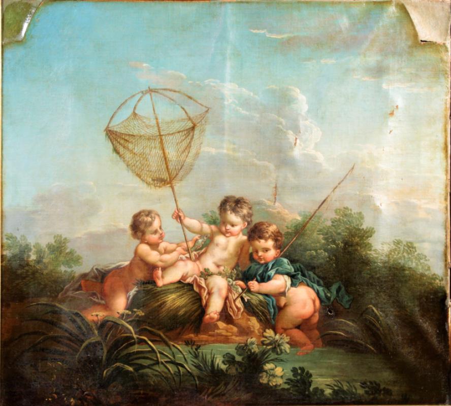 La composition originale de notre tableau, réalisée par François Boucher, s'inscrivait dans une série de quatre toiles sur le thème des quatre éléments. Ces toiles étaient destinées à des dessus de porte.