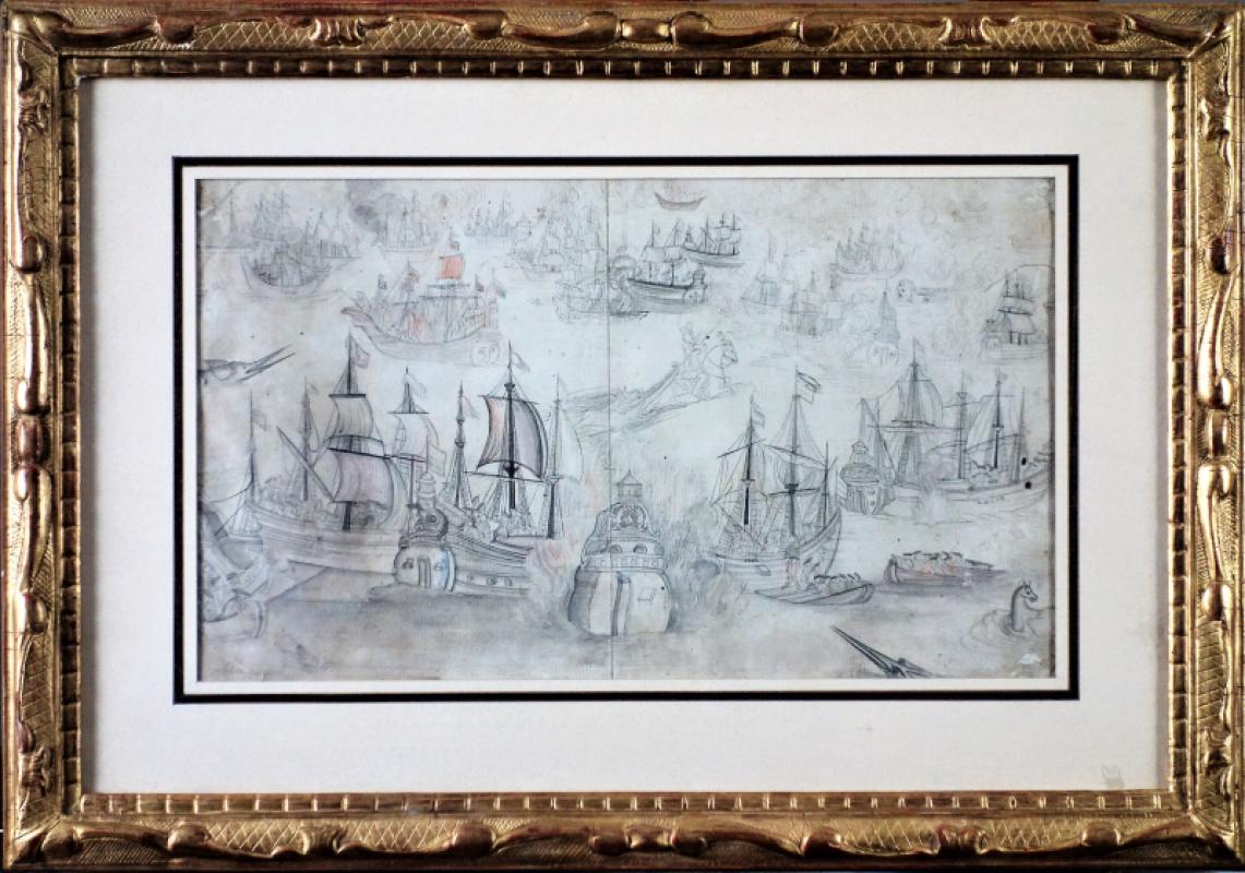 Dessin à l'encre et lavis rehaussé d'aquarelle sur papier vergé.