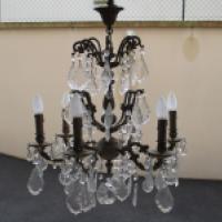 Important lustre à six lumières et pampilles.