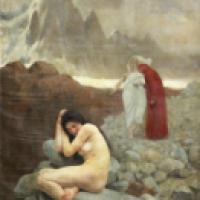 La scène de notre tableau n’est pas directement issue des Métamorphoses d’Ovide, mais illustre le chant XXX, v. 37-39, de L’Enfer de La Divine Comédie de Dante. Loewe-Marchand s’appuie sur le lien entre Antiquité mythologique et Renaissance.