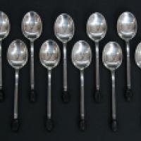 Douze cuillères à moka en argent, manches à cannelures terminés par un grain de café en bois - Poinçon de Maître, poinçon Minerve,