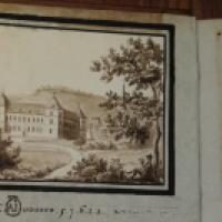 Exemplaire enrichi de de deux petits lavis collés sur les premiers contreplats, le premier représentant le château d'Ancy-le-Franc.