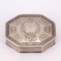Boîte en argent de forme octogonale à décor ciselé d'une couronne de laurier, fleurettes et perles - Style Empire, poinçon Minerve