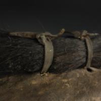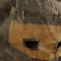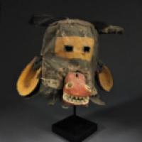 La base du masque est ornée d'une collerette de peau anciennement garnie de fourrure.