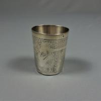 Timbale de forme tronconique en argent gravée sur le corps de rinceaux à fond guilloché orné d'un cartouche gravé du prénom Odette.
