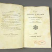 Exposé des signes de numération usités chez les peuples orientaux anciens et modernes per A.P. PIHAN prote de la typographie orientale à l'imprimerie impériale.Paris, imprimerie impériale 1860. Rare volume in-6, reliure à demie basane, dos à nerfs frappé du N couronné doré au petit fer. Sur la page de titre, cachet rouge de la bibliothèque du ministère de la Maison de l'Empereur portant le numéro 220 et cachet rouge portant la mention don n°3947.