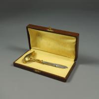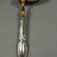 Cuiller à sauce à manche en argent fourré le cuilleron en métal doré. Dans un écrin.