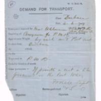 Il s’agit de la demande, établie le 4 juin 1879 par Xavier Uhlmann, pour le transport du corps du Prince Impérial de Durban à Pietermaritzburg (PMB) [Le Prince a été massacré par les zoulous le 1er juin après s’être battu comme un lion – Ce n’est que le 2 que son corps fut recueilli par l’armée anglaise – La dépouille fut transportée au camp (entre Inunzi et Itelezi) où, reposant sur une prolonge d’artillerie, recouvert du drapeau tricolore, les honneurs militaires lui furent rendus – Le corps fut ensuite embaumé par le Docteur Scott – Un cercueil fut fabriqué dans l’urgence par des soldats du génie avec des caisses de thé – Le Prince fut escorté par un peloton du 17ème Lanciers jusqu’à Durban, où se trouvait Xavier Uhlmann, qui prit alors les choses en main pour le rapatriement en Angleterre]