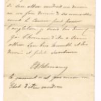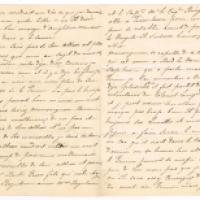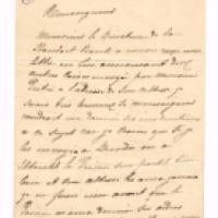 Il vient de recevoir deux nouvelles caisses d’Angleterre de Franceschini Piétri [homme de confiance d’Eugénie] et demande ses instructions au Prince – Il n’a pas de nouvelles de lui, « Lomas [ordonnance anglaise] pourrait bien m’écrire un mot » - « Si vous saviez Monseigneur comme je suis malheureux de ne pas être auprès de Son Altesse » - Il a rencontré à Durban « ce commandant qui est venu à bord de « La Danube » à Cap-Town, qui a parlé mal du Prince », « il fait partit des volontaires du Colonel Longsdale », « il porte toujours une figure à faire sauver le monde », « en cas qu’il irait dans le corps d’armée où se trouve Son Altesse, le Prince pourrait se méfier un peu de lui, non pas que je crois qu’il sera assez courageux de faire du mal au Prince, mais crains sa plume »