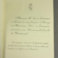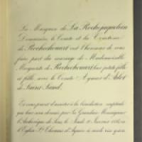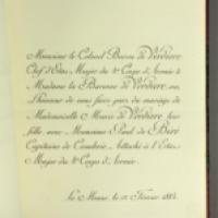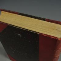 Recueil de faire-part de mariages mondains des années 1884-1886 réunis en un fort volume à demi-reliure en chagrin rouge,dos à nerfs, pièce de titre dorée à froid.