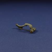 Fibule à ressort en bronze à belle patine verte, attache de l’épingle plate