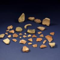 Fort lot de tessons et débris de poterie antique dont sigillées et tegulae.