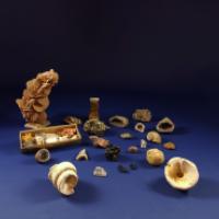 Importante collection de minéraux divers dont une grande rose des sables sur socle.