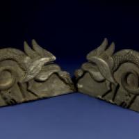 Paire de reliefs en bois sculpté noirci à décor d’animaux fantastiques