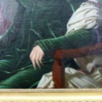 Fils du célèbre ébèniste, Henri-François Riesener entame une brillante carrière de portraitiste sous l'empire, réalisant entre autres le portrait de Joséphine de Beauharnais (Château de Malmaison, inv. N.3097). Suite à la chute de l'empire, il part en Russie où il retrouve une nouvelle clientèle notamment en compagnie de Swebach avec le quel il peint le portrait du tsar Alexandre. A son retour en 1822, ne retrouvant pas sa pratique princière, il fait entrer son neveu, Eugène Delacroix chez Pierre-Narcisse Gurérin, et peint pour la bourgeoisie montante. Il intègre volontiers des éléments de mobilier dans ses compositions d'atelier. Notre tableau, représentant une femme de la bourgeoisie, vêtue sobrement d'une robe à la romaine de velours vert à ruchers de dentelle peut correspondre à cette période.