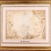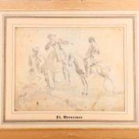 Dessin double face au crayon et lavis d'encre dans un passe partout chargé d'un cartel portant le nom PH. WOUWERMAN.
