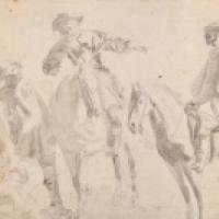 "Paysage" et "halte de cavaliers".