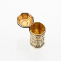 Boîte à mouchoir souvenir en argent estampé et gravé de chiffres romains sur le corps octogonal et de la mention :" Mouchoir de la reine de Prusse" au dessous.