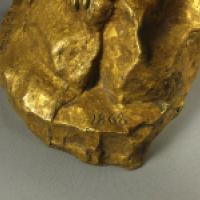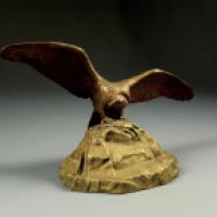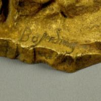 Vautour tenant sa proie sur un rocher. Bronze à patine dorée signé Bofering sur le rocher daté 1868.