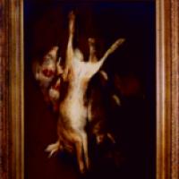 Nature morte au lièvre, predrix et lapins.