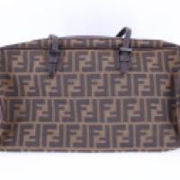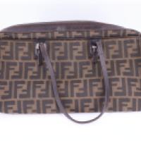 Sac à main en toile monogrammée, intérieur ouvrant à un compartiment et une poche zippé