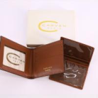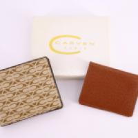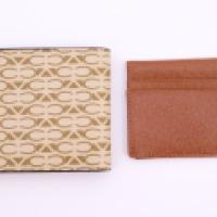 Lot comprenant un portefeuille en cuir monogrammé et un porte-cartes en cuir marron (dans leur coffret d'origine)