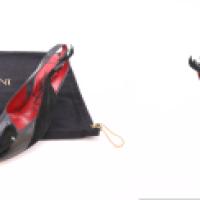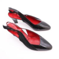 Paire d'escarpins de soirée en cuir vernis et cuir suédé noirs, Made in Italy