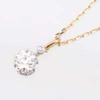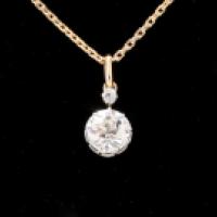 Collier en or jaune 18 k à maille liée, double chaînette de sécurité avec fermoir mousqueton, agrémenté d'un pendentif en or rose 18 k et argent 800e orné d'un diamant d'un diamant taille ancienne en serti griffe surmonté d'un diamant taille ancienne d'environ 0.03 ct.