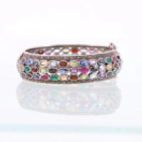 Bracelet jonc en argent 925 millièmes serti de pierres de couleurs. PB. 42,1 g. A charge de contrôle.