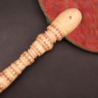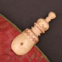 Important écran à main dit chauri, à manche en ivoire tourné, gravé et encré à l’encre rouge.