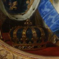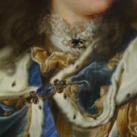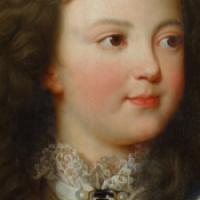 On connaît plusieurs versions de réductions en buste dont celle commandée par le grand-duc de Toscane conservée au palais Pitti à Florence et celle commandée par le cardinal d’Aix. Notre tableau représente à la fois le sceptre et la couronne posée sur un coussin de velours rouge, ce qui n’est pas le cas des autres versions, et les dentelles et broderies sont supérieures en qualité aux autres modèles connus. Le poing posé sur la hanche du jeune roi est repris sur le portrait de Louis XIV conservé au Prado. La très grande qualité de ce portrait accrédite la thèse d’une commande privée d’un client régulier de l’atelier tel qu’était Charles Auguste d’Allonville de Louville (1664-1731), peint par l’artiste ainsi que sa femme en 1708, et dont la fille Adélaïde épouse en 1731 Adrien Antoine de Blocquel de Croix, baron de Wismes.
