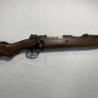 Carabine K98 Mauser , calibre 8 x 57 is, marquage de chambre "42" code numérique utilisé par Mauser entre fin 1938 et fin 1940, arme datée de 1939, toutes les pièces au même numéro, fût en noyer, N°7497 (fût en bois raccourci, qq trous d'envol sur la crosse, parties métalliques d'aspect gris)