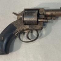 Revolver Bulldog, calibre 450, plaquettes de crosse en bakélite, mécanisme fonctionnel, état moyen (arme oxydée à nettoyer)