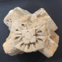 Clef de voûte en pierre sculptée à décor d'une large fleurette - Travail ancien - H. 30 cm, L. 44 cm, P. 47 cm (usures)