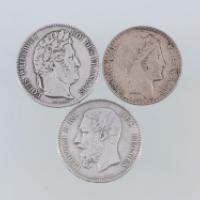Louis Philippe - Léopold II (France et Belgique) Lot de deux monnaies en argent (900 mil.) comprenant :